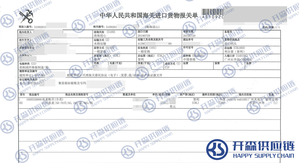 一、智利冷凍貽貝進(jìn)口報(bào)關(guān)代理案例詳情