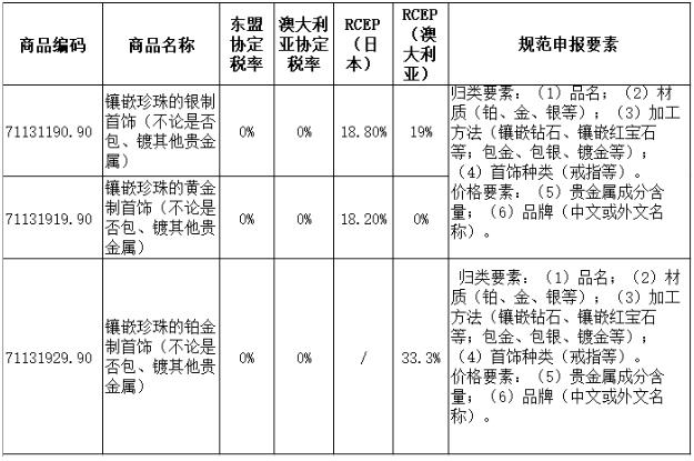 珍珠可以鑲嵌在貴金屬上,制成精美的首飾。鑲嵌珍珠的貴金屬首飾,應(yīng)歸入7113項下。以下是珍珠首飾可能涉及的歸類、規(guī)范申報要素及進口關(guān)稅稅率,填報時請?zhí)貏e注意: