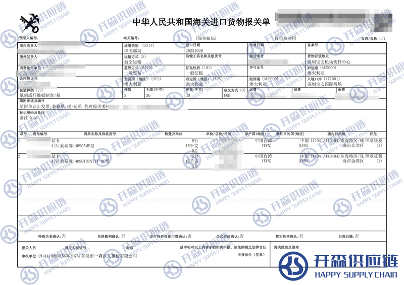 一、澳大利亞高端顯卡進(jìn)口報關(guān)代理案例詳情