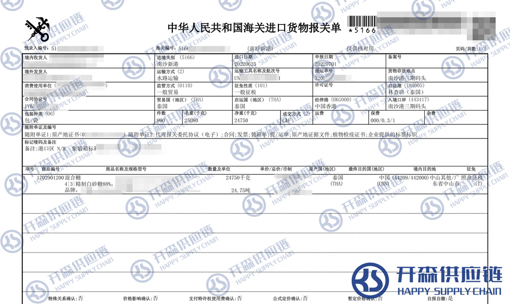 一、泰國(guó)混合糖進(jìn)口報(bào)關(guān)代理案例詳情